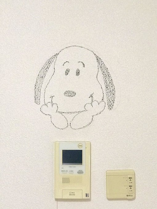 🖍今日の落書き🖍ウッドストックも仲間入り🐶🐥 #壁絵