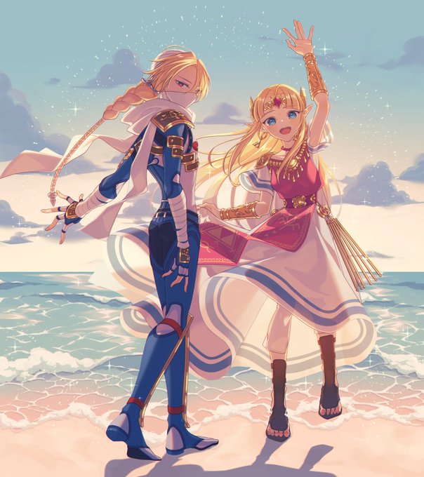 597 4231 夏満喫中のゼルダちゃんとプリンちゃん🌺(過去絵リメイク) 海行きたい… 23/08/07 00:27