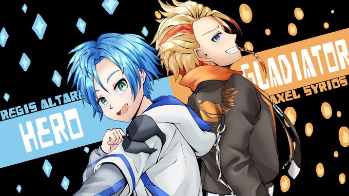 Without the title!! I think they fit very well with the characters and I'm excited to see Axel continuing the game 😊😊🧡 For those that don't know, the characters are Sou (Altare), Sara (Magni), Joe (Axel) and Prof Mishima (Vesper) #ArtXel #holoTEMPUS