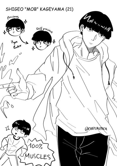 Sketch: Mob (21) + 100% Muscle #mp100 #mp100fanart #MobPsycho100 #創作 #イラスト #お絵かき #イラストレーション #モブサイコ100 #影山茂夫 #モブ #霊幻新隆