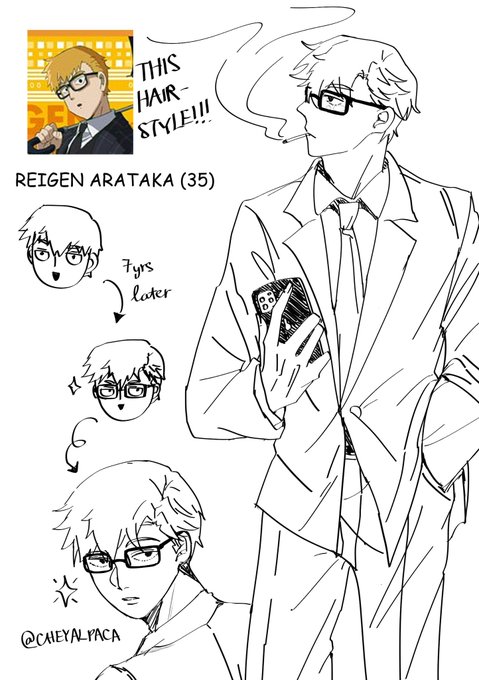 Sketches of Reigen (7 years later) #mp100 #mp100fanart #MobPsycho100 #創作 #イラスト #お絵かき #イラストレーション #モブサイコ100 #影山茂夫 #モブ #霊幻新隆