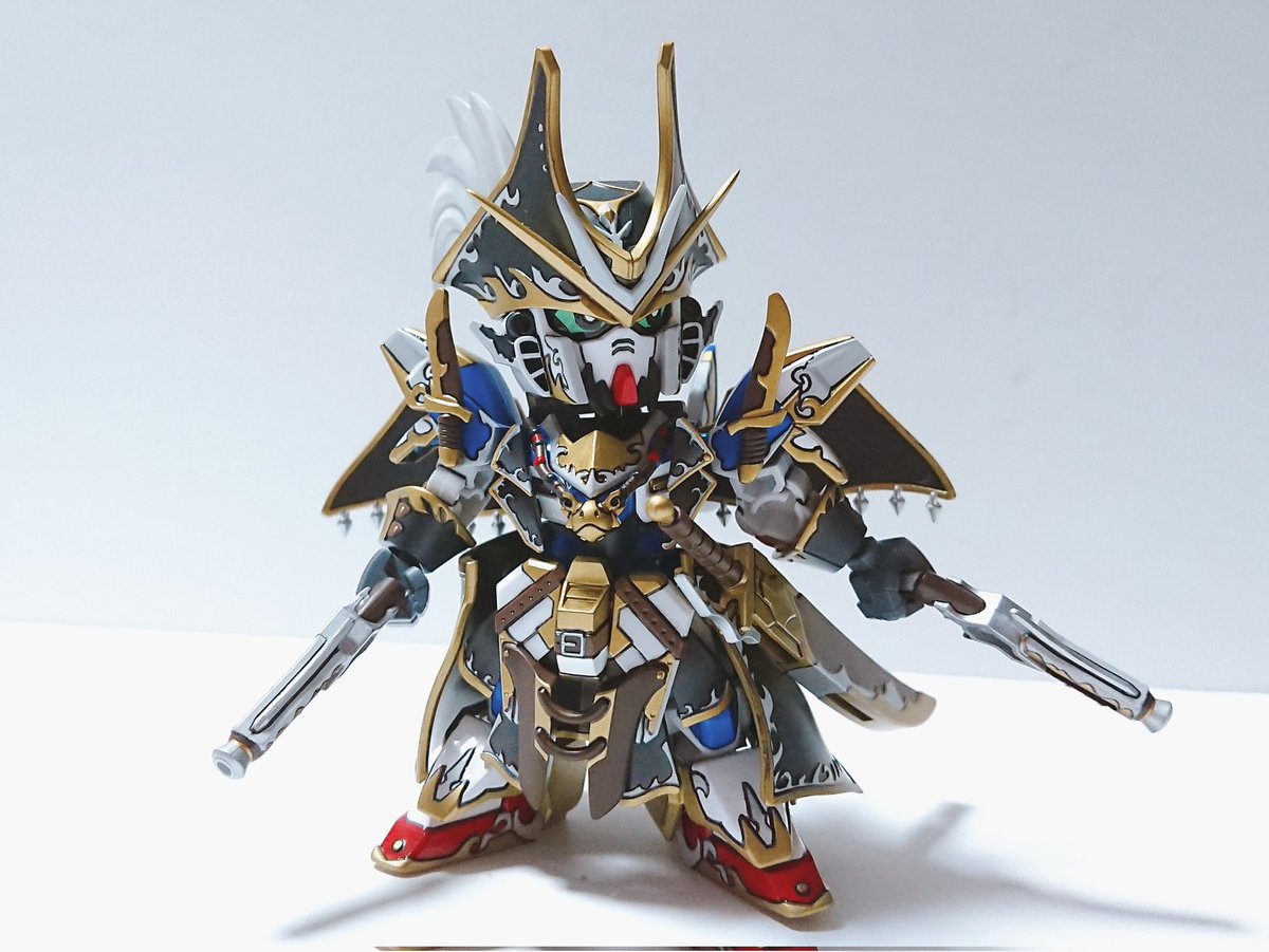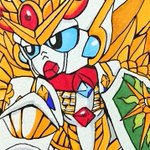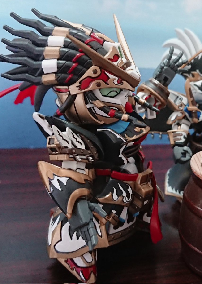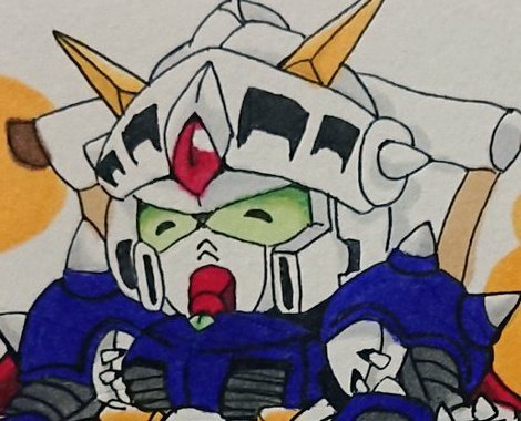 ファレホ筆塗り ベンジャミンV2ガンダム 一旦完成です…!😭 必殺技のクリアパーツはあの光ってる感じでグラデーションしました。目は箱絵っぽく塗ってみました #SDガンダム #SDガンダムワールドヒーローズ
