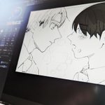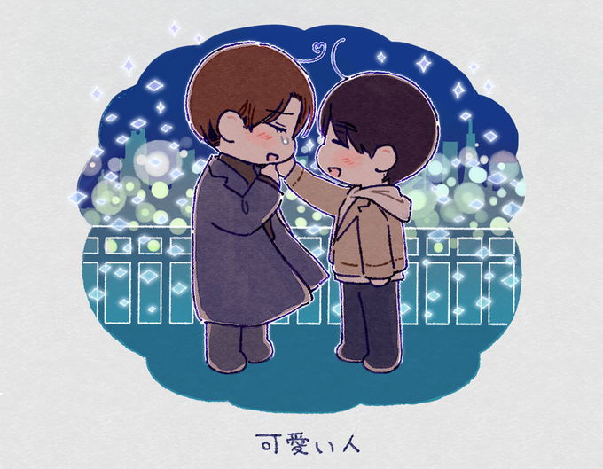 🍒フォトジェニックな2人 描きながら「くろさわ…またあだちをすぽっと包めるジャケット?コート?着てる~☺️」て思いました☺️