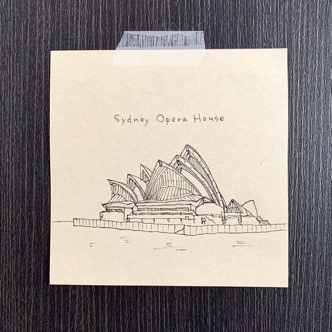 #inktober #inktober2019 シドニー・オペラハウス Sydney Opera House。無名だった建築家ヨーン・ウツソン Jorn Utzon が設計。 #architecture 形状が難しく構造設計も困難だったため1959年に着工したが竣工は1973年。世界で最も建造年代が新しい世界遺産。 @LUKA_el_sol さんネタ提供thxでした!