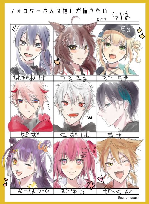 1 2 にじさんじのリプ分完成〜! リプ嬉しかったからたくさん描いたよ、chu!! #フォロワーさんの推しが描きたい 23/02/21 02:04