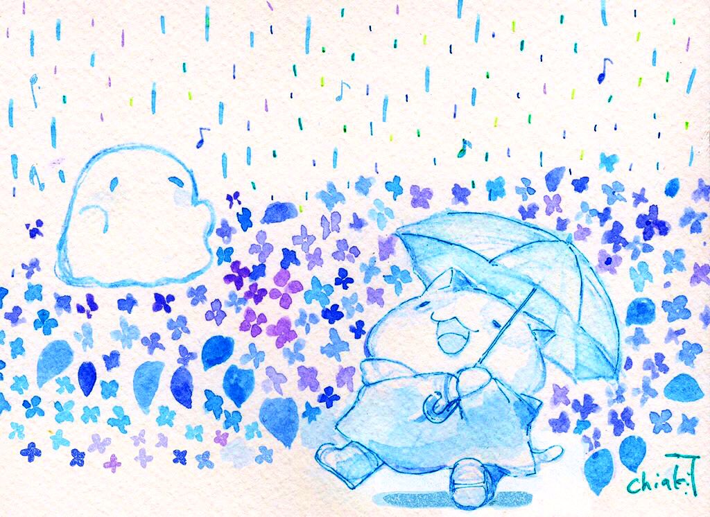 ねことおばけと植物の5月。 🐈👻🌼🌱 #今月描いた絵を晒そう #イラスト