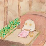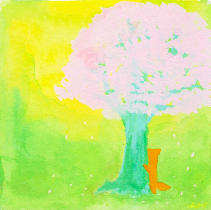 3 39 「陽ざし」 #おばけのモコ #イラスト #桜 22/04/22 11:33