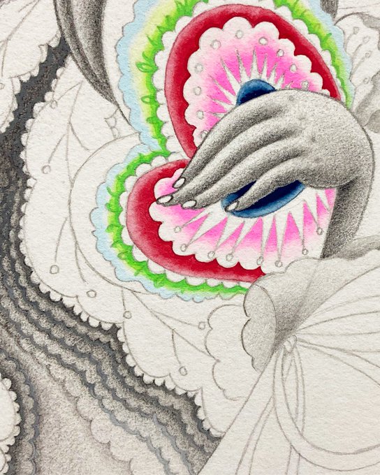 Completed🦋 @ShinobazuG にて展示します。 #art #drawings #painting #watercolor #pencildrawing #heart #lips #butterfly #pencil #doll #lumograph #chiakishuji #アート #水彩 #水彩画 #美術 #絵画 #鉛筆画 #ドローイング #レース #人形 #唇 #蝶 #ルモグラフブラック #鉛筆 #不忍画廊 #集治千晶