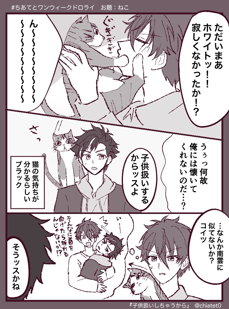 ちあてと1weekドロライ、ご開催おめでとうございます❤️🖤🔔 お題「ねこ」お借りしました〜!? ぐもは猫を飼うというより、共存って感じ。 #ちあてとワンウィークドロライ