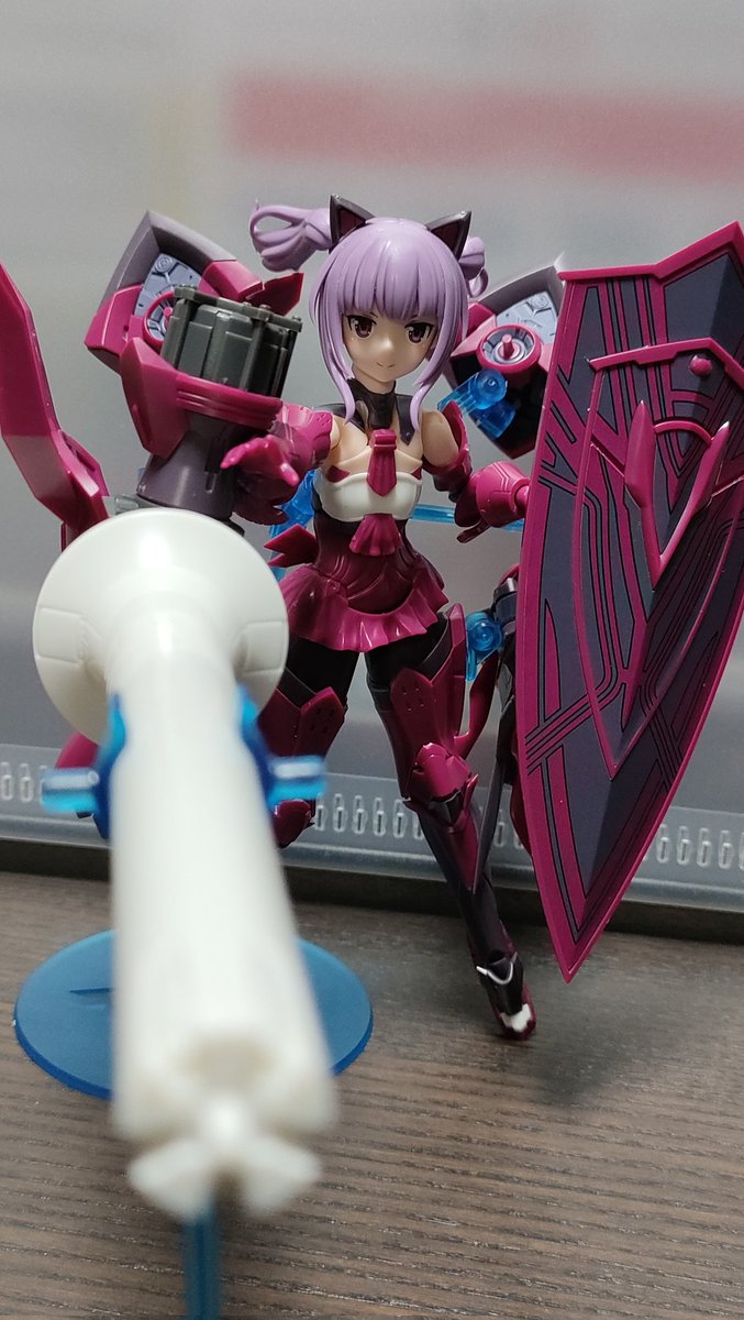 メガミデバイスの一条綾香ちゃん武装完成しました!撮影中ちょっとツインテールの片方にトラブルが起きたけどなんとか頑張った! #メガミデバイス