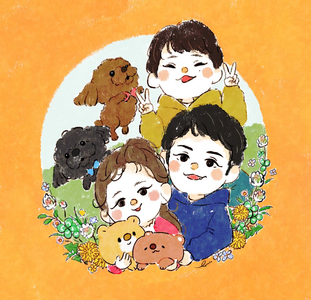 3 26 友達のおこさまとおいぬさまの似顔絵かきました! みんなかわいいなぁ👼❤️ #イラスト #似顔絵 #トイプードル 22/11/25 15:28