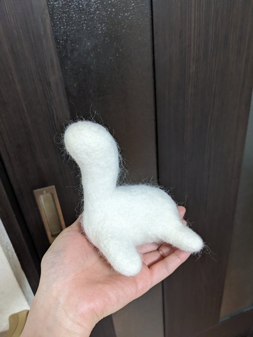1 16 足ついたぁーーー! もう少しだけ形整えたら、、 いよいよ色つけ(つω`*)♡ 初めて作る羊毛フェルトの作品、、 土台までは順調だけど、、 色つけ不安しかない( ´° ³°`) 頑張る・*・:≡( ε:) #APEX #ネッシー #羊毛フェルト #ハンドメイド 22/02/06 00:55