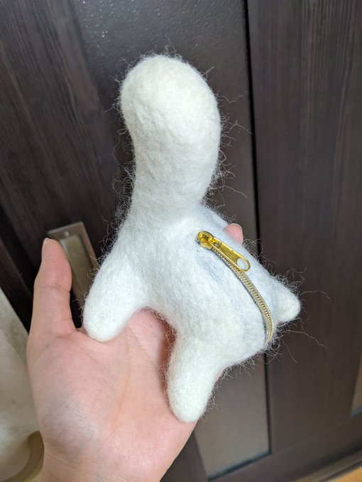 2 21 どーしてもチャックがないのが納得いかず|ω・`) 試行錯誤してつけてしまった♡ 思ってたよりしっかり付けられた(つω`*) やっぱりこの形のネッシーには チャックがないとฅ( ̳• ·̫ • ̳ฅ)♡ これから色つけしていく٩(๑❛ᴗ❛๑)۶ #APEX #ネッシー #羊毛フェルト #初めての羊毛フェルト 22/02/07 01:13