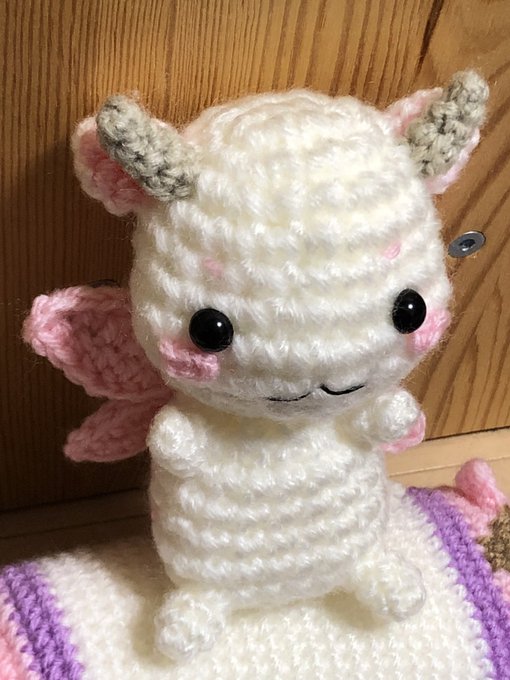 できた! 伝われ!この可愛さ! ちゃんと一人でお座りします。 #yuyuyu #あみぐるみ