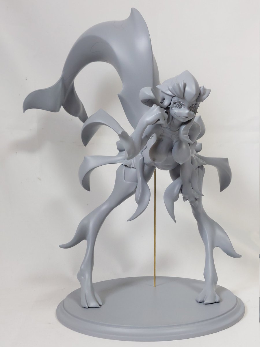 #君たちはどう作るか ①素体を作る。 ②ポーズをとらせる。 ③ひたすらパテを盛って、削る。 ④サフ吹いて表面処理。 絵が描けないからデザインは作りながら適当に考えてるよ( ´-ω-)💦