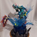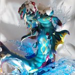 恐竜娘モサ完成しましたぁ~(^-^)/🎉 UV硬化レジンでデコレーションした展示用の豪華バージョンです(^o^)💕 これは是非ともイベント会場で現物を見てもらいたい(#^.^#)v🎶 #WF2022S #オリジナルフィギュア #モササウルス