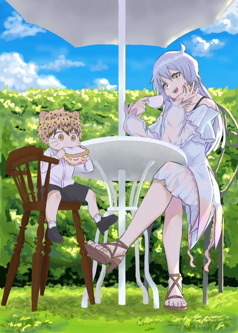 #イラスト #イラスト好きさんと繋がりたい #絵描きさんと繋がりたい #おねショタ #絵柄が好みっていう人にフォローされたい #絵柄が好みって人がいればいいなぁ 「ボクが持つ!!!」 「傘さすのはまだ早いかな…😅」