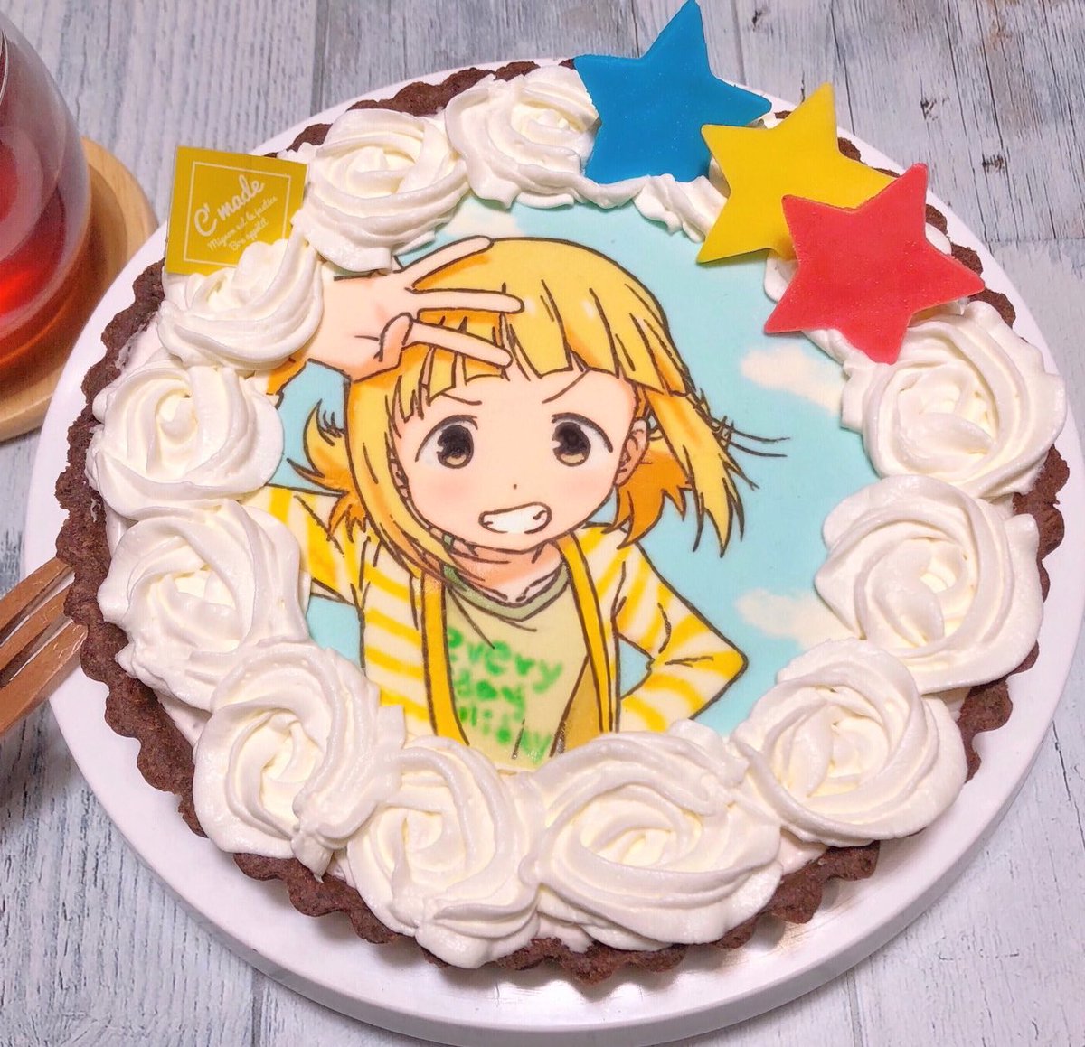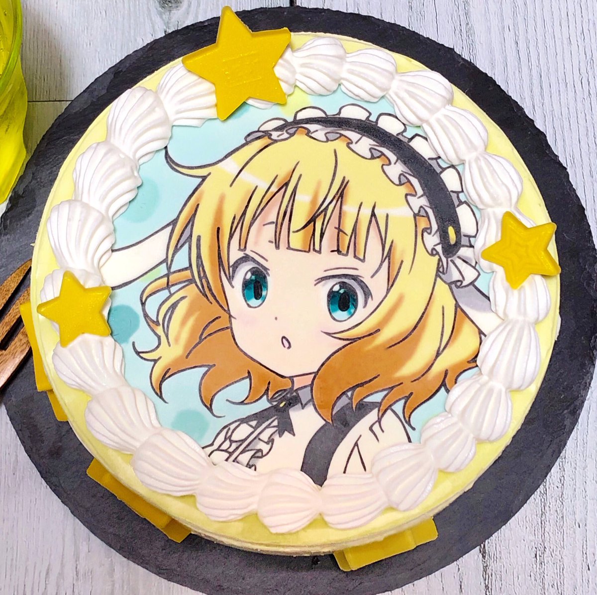 阿波連れいなちゃんのキャラケーキ完成〜🙌 とっても可愛く、いい感じにほわ〜っと出来ました✨ なにか話しかけてますね☺️ キャラチョコもお気に入り♪ ほぼ白チョコ色なので簡単ですw (デコ用の☆が途中で終…事前の確認大事!w) #阿波連さん #阿波連さんははかれない