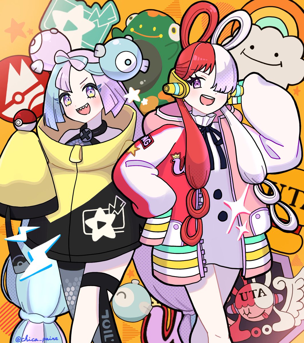 並べると画面がめちゃくちゃポップで可愛い☺️ #イラスト #ポケモンSV #ナンジャモ #ONEPIECE #ウタ