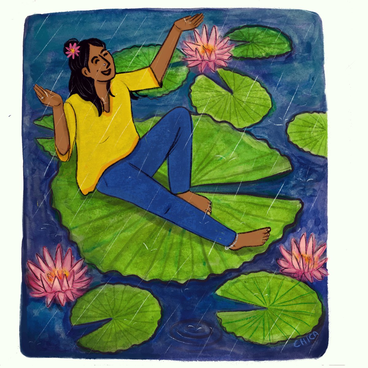 For yday’s #inktober, I picked two prompts: Lily Pad from #plantober2020 by @lotusbubbleart and Rain from #peachtober20! An ode to the crazy but enjoyable rains in the city lately! . #inktober2020 #illustration #rain