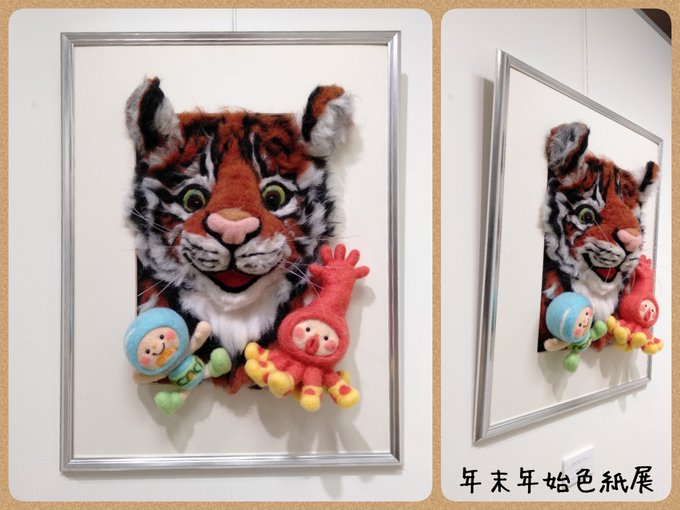 明石文化国際創生財団の年末年始色紙展に出品させてもらってます。 一年色々あったけど来年も心も身体も健やかに過ごせますように♡と願いを込めて🐯 #アスピア明石 3F #スマイルギャラリー 12/22〜1/13 10:00〜20:00 #羊毛フェルト #虎