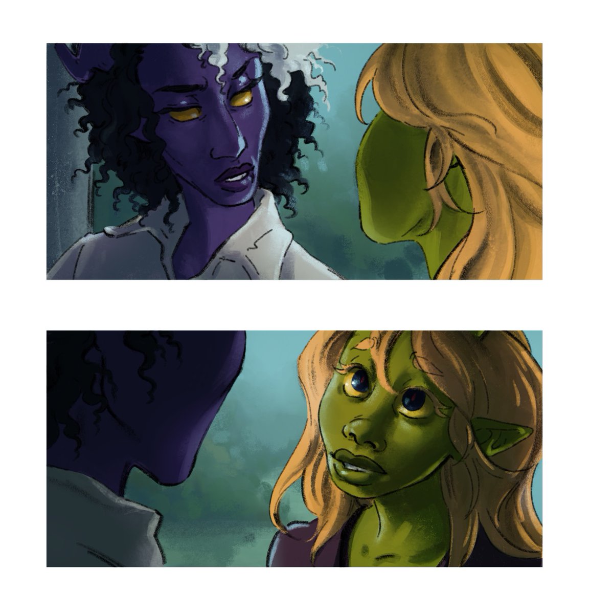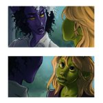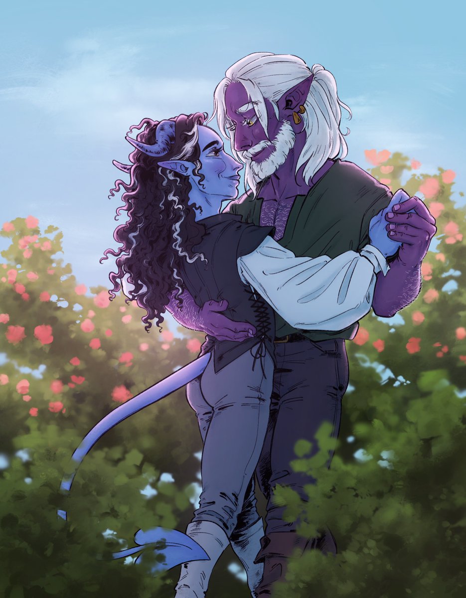 more art of my cos pc... having a Romantic Moment 🥺🥺🥺 #tiefling #sapphic #wlwart #dnd5e #CurseOfStrahd #cos #DnDcharacter #ArtistOnTwitter
