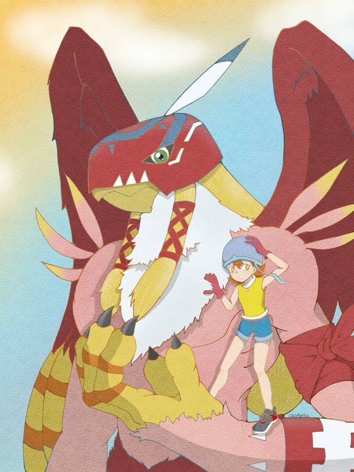 #リメイクしようデジモンイラスト交換会 私は主催のおにくちャんさん(@uwaaaa_029)と交換しております☺️ ←ちでじか おにくちャん→ 迫力不足になってしまいましたが 自分らしいイラストになったかなと思います! おにくちャん 素敵な企画をありがとうございます😆とても楽しかった!!