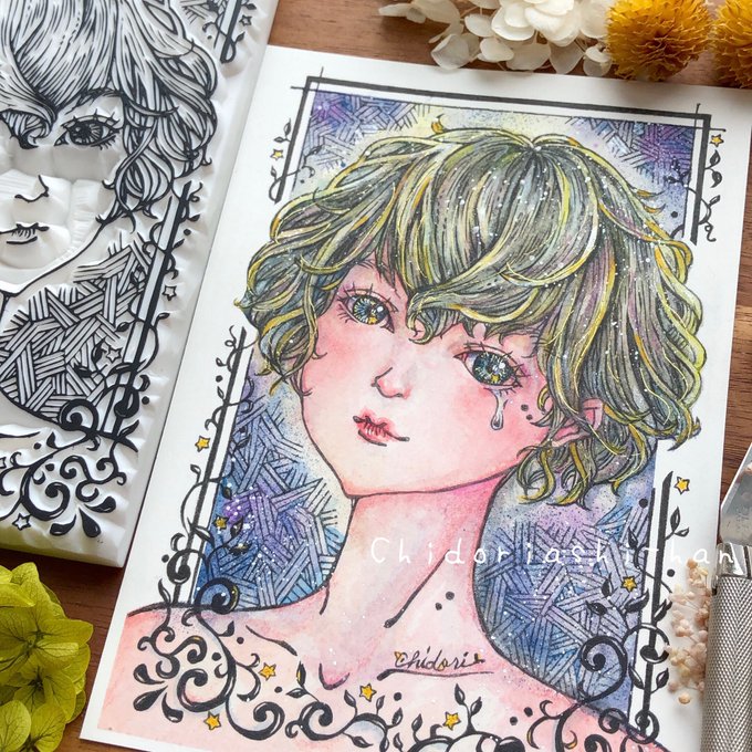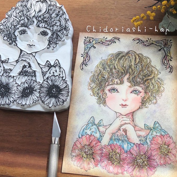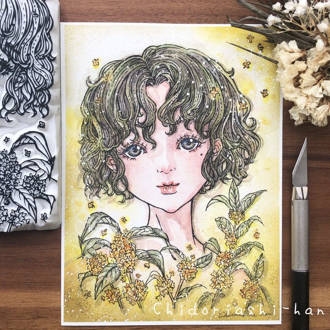 『琥珀』 消しゴムはんこ・ハガキサイズ一枚彫り作品 着色完了✨🙌 金木犀の季節になんとか間に合った✨☺️ #消しゴムはんこ #イラスト #アナログ画 #illustration twitter.com/i/web/status/1…