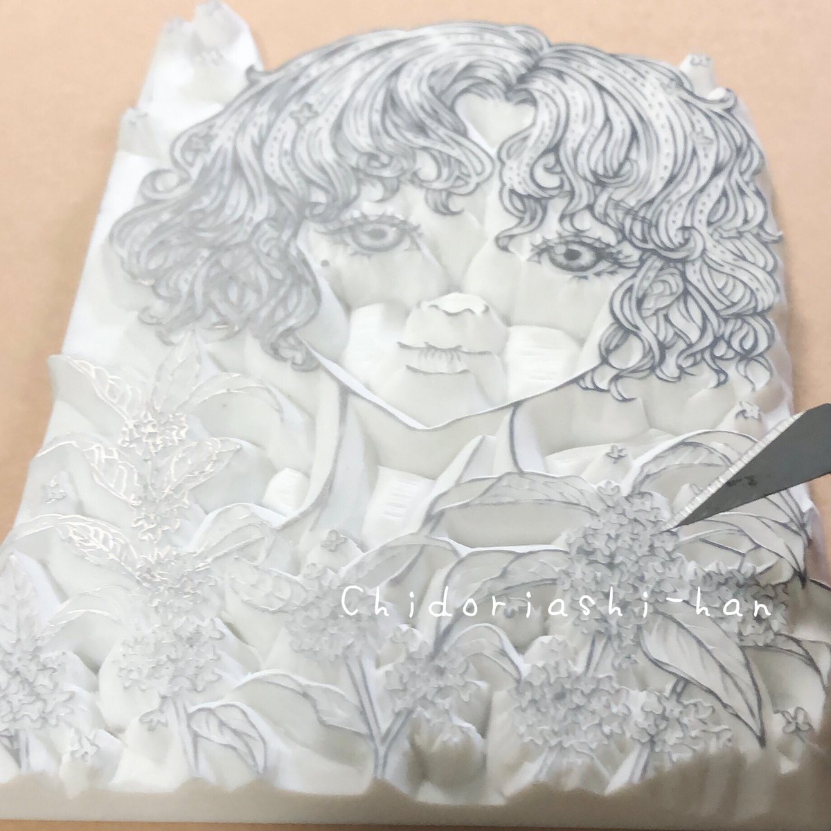 A4サイズけしごむはんこの進捗。 人物は彫り終えた!残り2/5くらいかな。がんばって仕上げるぞ💪 #消しゴムはんこ #イラスト #アナログ絵 #illustration #eraserstamp #ガチ制作会