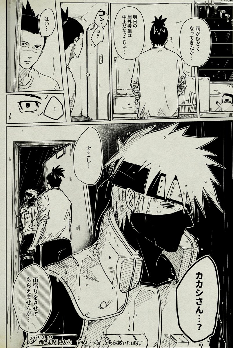 50 219 ついにコマまで割って描いてしまった中忍と上忍師カカイル。いつのまにか素顔公開されてたカカシ先生、口元にホクロあるのは卑怯〜 23/03/18 21:42