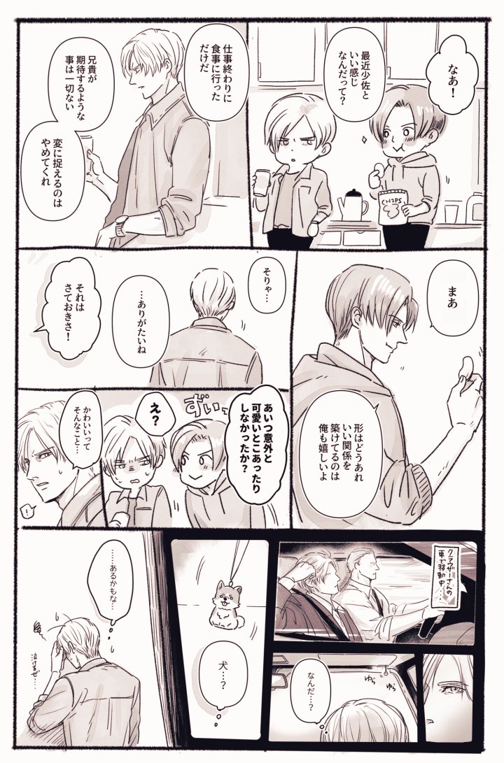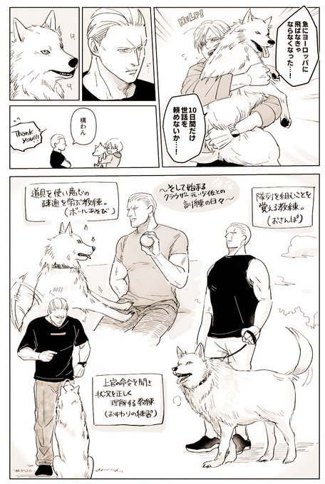 169 712 元少佐と犬🐕 スペインから大きな生き物2匹連れて帰ってる設定と、二人の微妙な関係が好きなんだなぁ! ALT: Translation 23/05/17 17:52