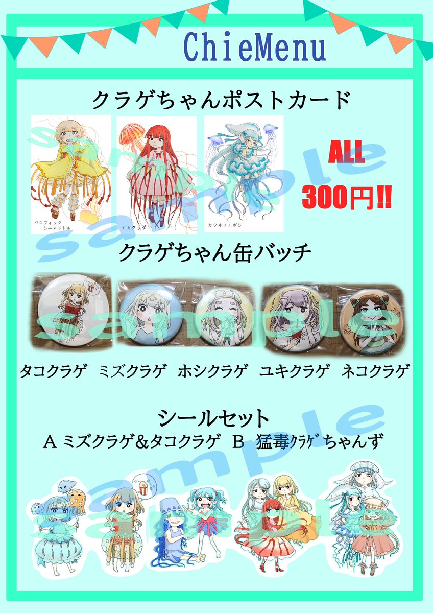 🪼5月5日コミティア144お品書き🪼 ちえのわ書房『つ51b』 *売り子の妹が制作した簪も販売します。 *通販希望の方はDMをお願いします。 *原画販売あり。 *猛毒クラゲちゃんずは当日コピー本販売ですが、後日製本版と交換対応いたします。(詳しくは別ツイートで) #コミティア144お品書き