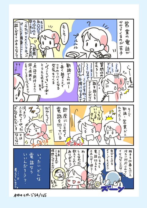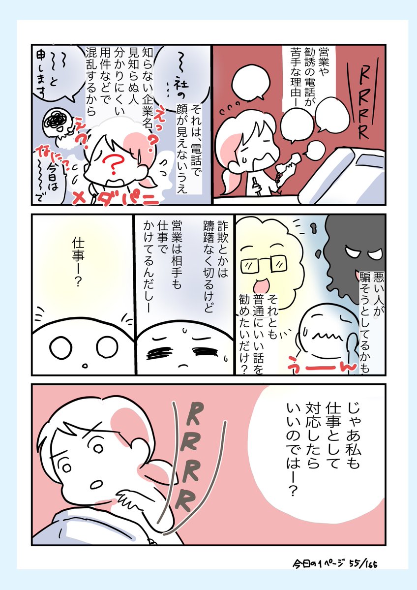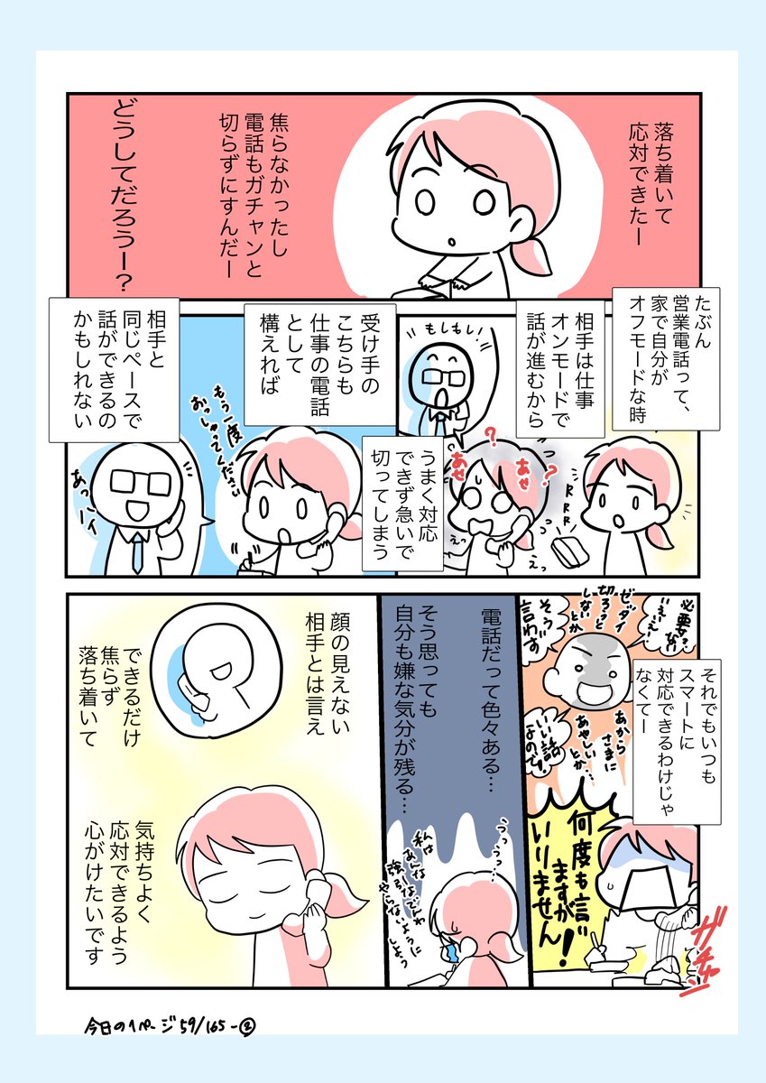 #コルクラボマンガ専科 #今日の1ページ 59/165 営業電話を受けるのが苦手で塩対応してたけど、ビジネス対応に変えたら気持ちが少しラクになりました。 #創作エッセイ #漫画が読めるハッシュタグ