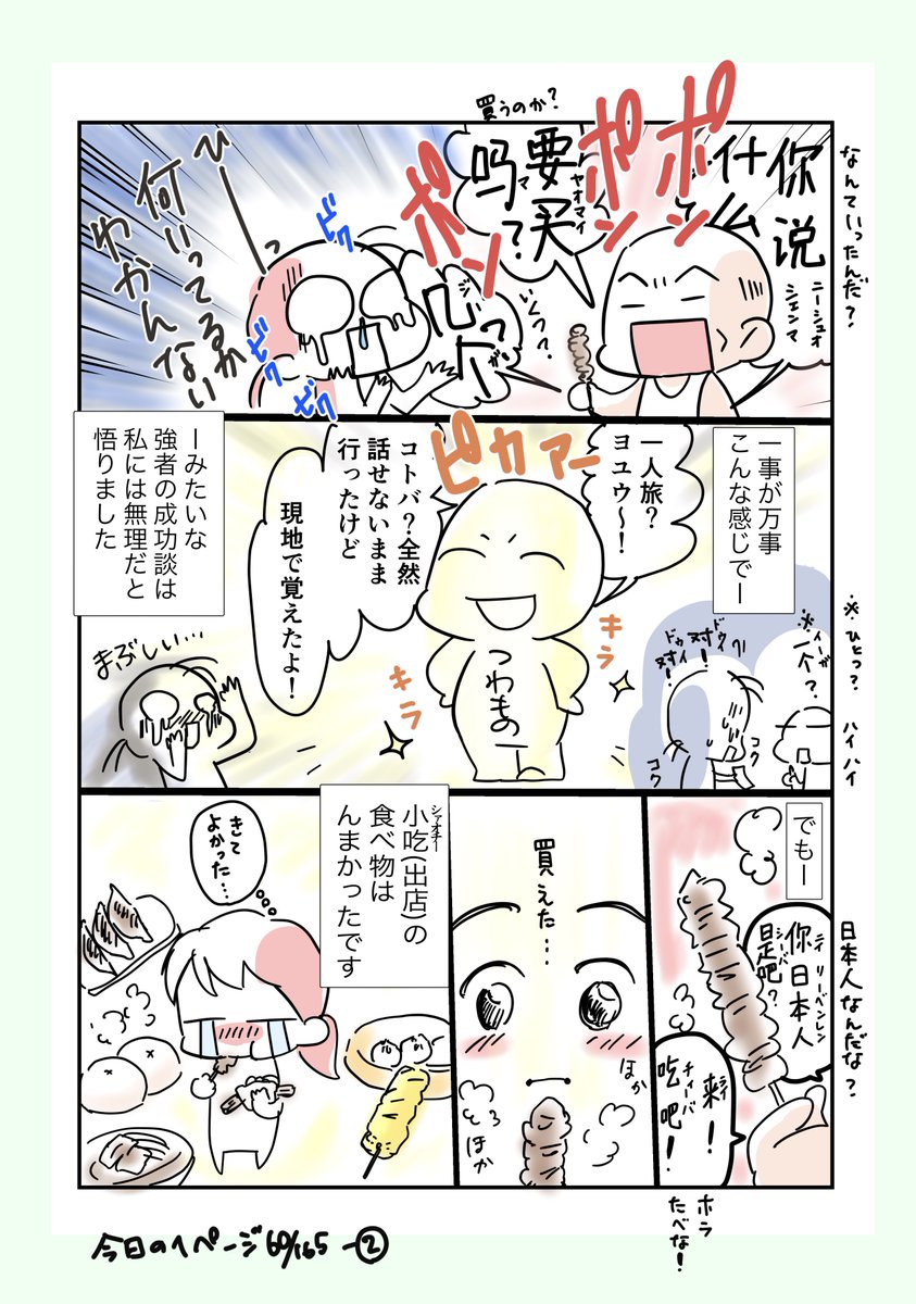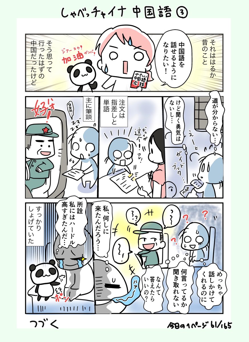 #コルクラボマンガ専科 #今日の1ページ 61/165 #しゃべっチャイナ中国語 3 中国語シリーズ第3話 と言いつつ、中国語がしゃべれなかった日記になってしまった。もう少ししたらしゃべり始める予定です。 #創作エッセイ #漫画が読めるハッシュタグ