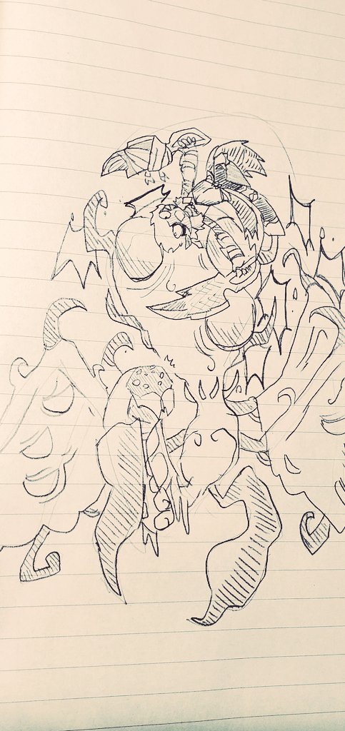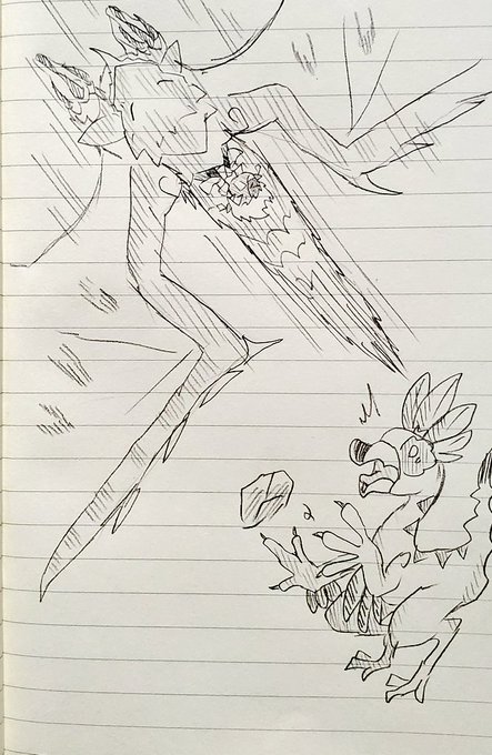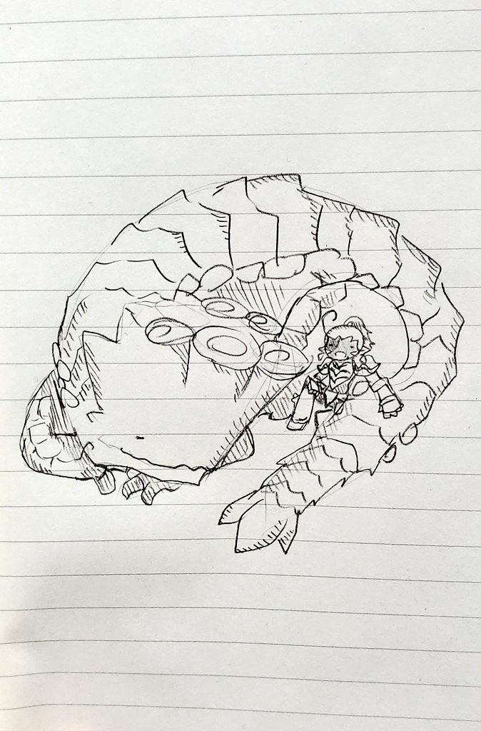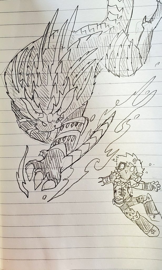 #ナバルのらくがきちょう #モンハンライズ 昨日はルーレットの結果、下位のバサルモスの狩猟笛を使って、上位のボルボロスに挑みましたヽ(・ω・´)ノ ボルボロス、なんかわからんけど親近感わく( ´∀`)