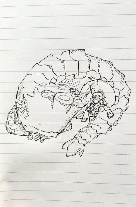 #ナバルのらくがきちょう 昨日は上位のマガイマガドさんとこへ( ´∀`) 紫玉とか逆鱗とか貰ったけど…強い!!ロアルドロスの弓で行く相手じゃない( ´∀`)w というわけで今日はオロミドロの武器作ります(●´ω`●) #モンハンライズ