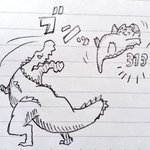 #ナバルのらくがきちょう 最近はどなたかのイラストを見ながら描くことが多いので載せられませんでしたが今回は公式のやつを見ながら描きましたヽ(・ω・´)ノ アオアシラにアケノシルムのランス、相性抜群でした( *´艸`) #モンハンライズ
