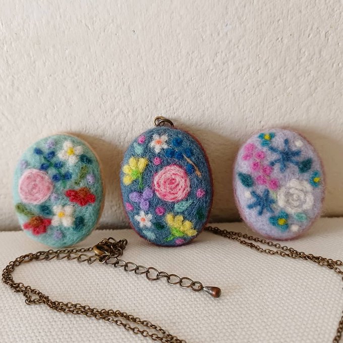久しぶりに作ったペンダントヘッド💓 出来上がってみると、何となくオリエンタルな雰囲気😁 大きい黄色いお花はガーベラです! #羊毛フェルト #羊毛フェルト作品 #羊毛刺繍 #ペンダントヘッド #woolfelting #needlefeltieg #accesory