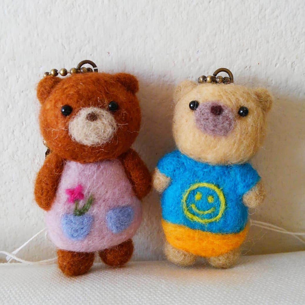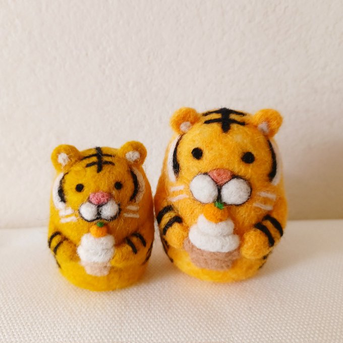 お久しぶりです😊 グレーねこさんと薄茶ねこさん💕 四つ葉のクローバー🍀のTシャツ👕着てます🎵 #羊毛フェルト #ねこ #クローバー #四つ葉のクローバー #felting #needlefelt