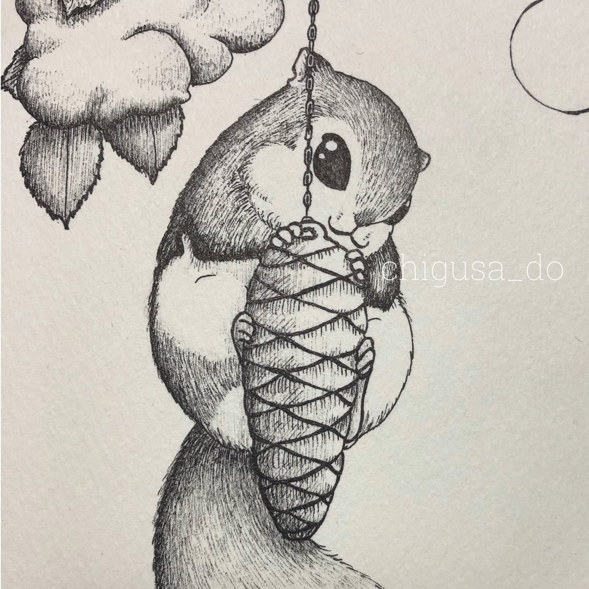 ぶらさがるエゾモモンガ #イラスト #ペン画 #エゾモモンガ