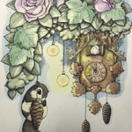 1 17 夜の鳩時計の森 #イラスト #ペン画 #エゾモモンガ #シマエナガ 21/11/16 17:52