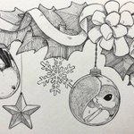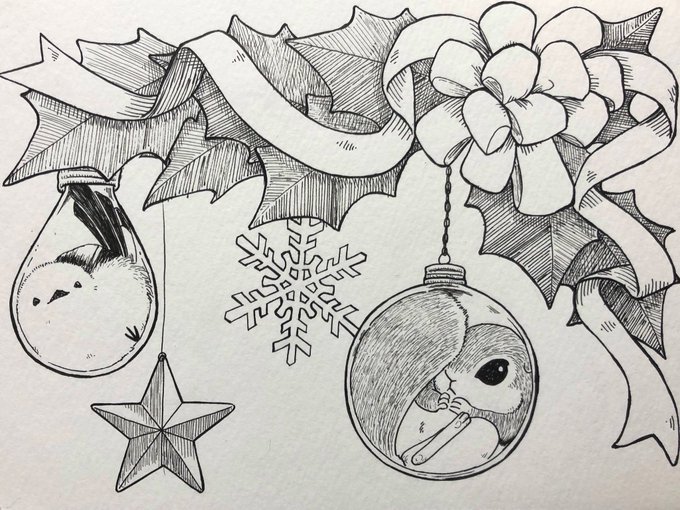 0 17 クリスマスオーナメントなエゾモモンガとシマエナガ #イラスト #ペン画 21/11/26 21:24