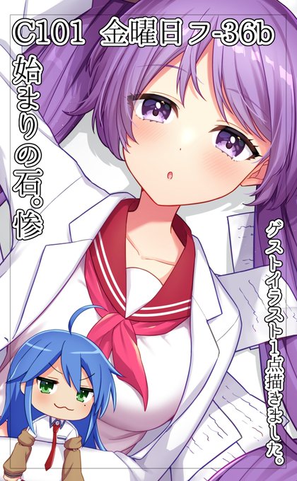 13 40 C101ゲストイラスト1点描かせていただきました! サークル【始まりの石。惨】 金曜日フ-36b 新刊『らき☆すたデス科学γ』500円 新刊購入特典でカラーペーパーもらえるらしいです。よろしくお願いいたします!! 22/12/29 11:29