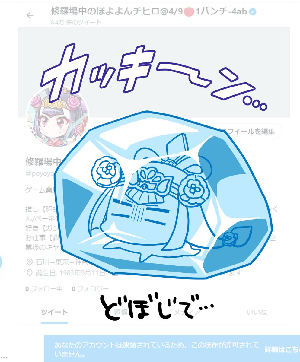 【改めてお知らせ】 ちゃんと周知していなかったのと未だにご存じない方もいらっしゃると思うので改めて…! 4月5日(水)にメインアカウント(@poyoyon_chihiro)が凍結されました!身に覚えがなく困惑しております🥲 凍結解除されるまでの間はこちらのアカウントを使うのでよろしくお願い致します🥶