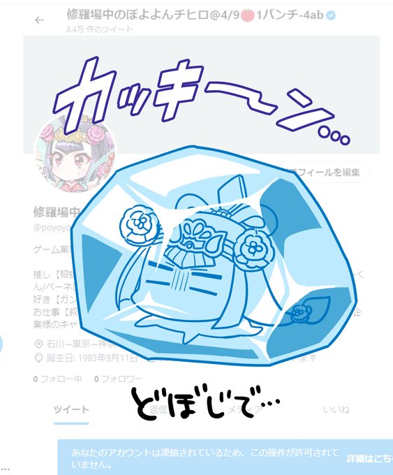 109 114 【改めてお知らせ】 ちゃんと周知していなかったのと未だにご存じない方もいらっしゃると思うので改めて…! 4月5日(水)にメインアカウント(@poyoyon_chihiro)が凍結されました!身に覚えがなく困惑しております🥲 凍結解除されるまでの間はこちらのアカウントを使うのでよろしくお願い致します🥶 23/04/28 13:43