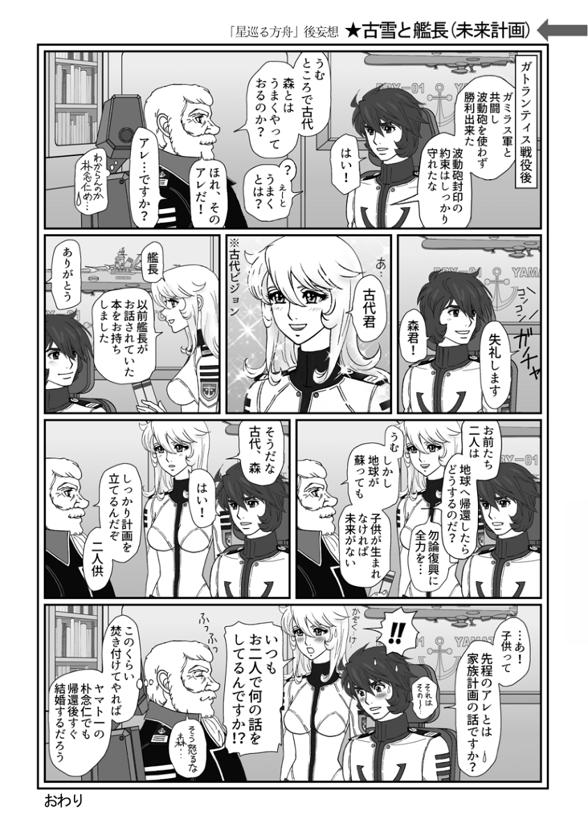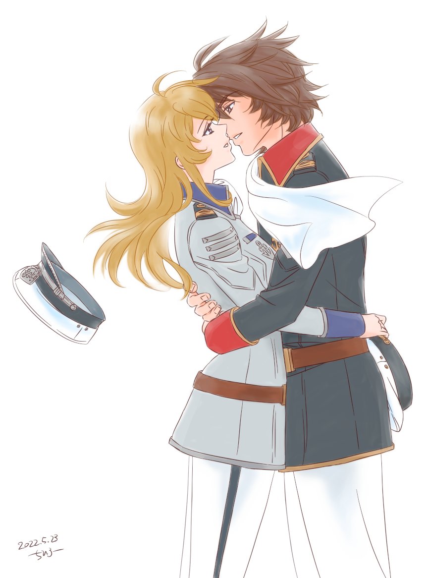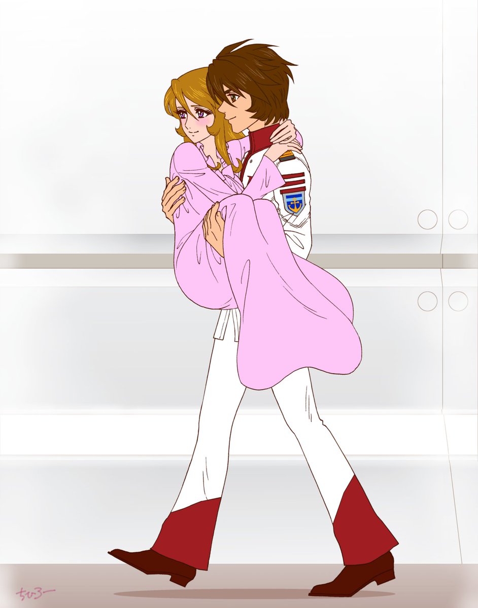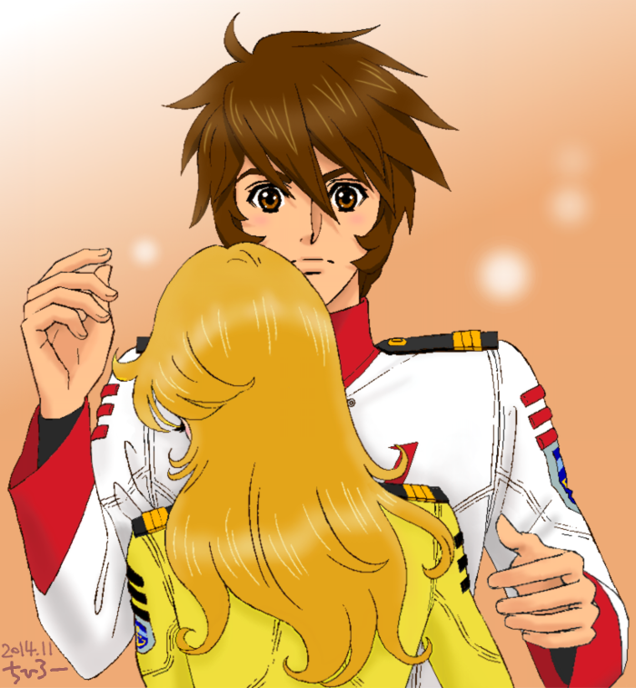 追憶ラストの雪ちゃんは艦内服。つまり2199本編と違うルートで古雪はラブラブになったのね~💕あのエンディング手繋ぎ直前に告白したのかな。 (この抱っこ絵は本編補完妄想❤️☺️)#Yamatofanart #過去絵
