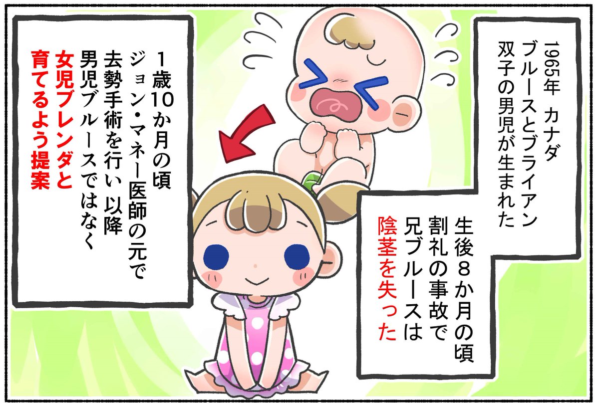 ジェンダーアイデンティティの決定要因に大きな影響を与えた!ブレンダと呼ばれた少年の事件 - 俺の嫁ちゃん、元男子。【LGBTQ4コマ ブログ】 yomedan-chii.jp/archives/32503…