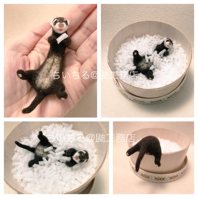 私のこれまでの #フェレットカーニバル展 での羊毛フェレット作品達を全部ではありませんがupします🎶 懐かしい…!な方や、我が家にいる!な方、そして知らなかった!な方へ✨ リプ欄にツリーで続けます。 まずは最初の2015年(1枚目、2枚目)と2016年(3枚目、4枚目)。 #鼬工務店 #羊毛フェルト twitter.com/chiichiru37/…