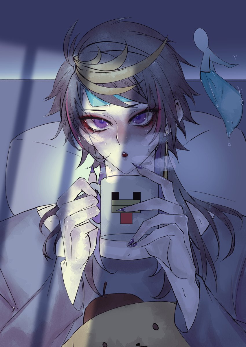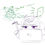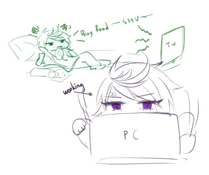 #YaminoArt 💜💚 Hikarino he doesn't do any work. He doesn't pay the food~ just sit around~ he doesn't work~~💢