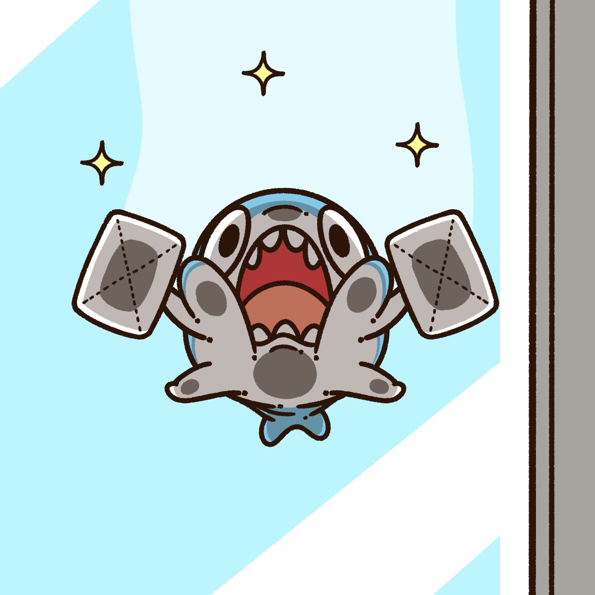 ムギュッと吸盤のように貼り付いて窓を掃除するスタイル! #ちいさめ #イラスト